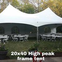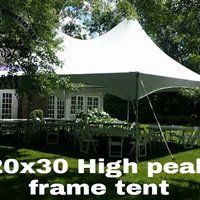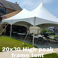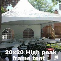 We have high peak tents, pole tents and framed tents with mesh side walls, window side walls or solid white side walls for your special event.